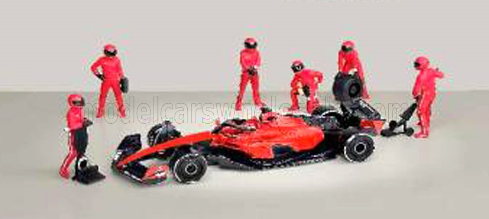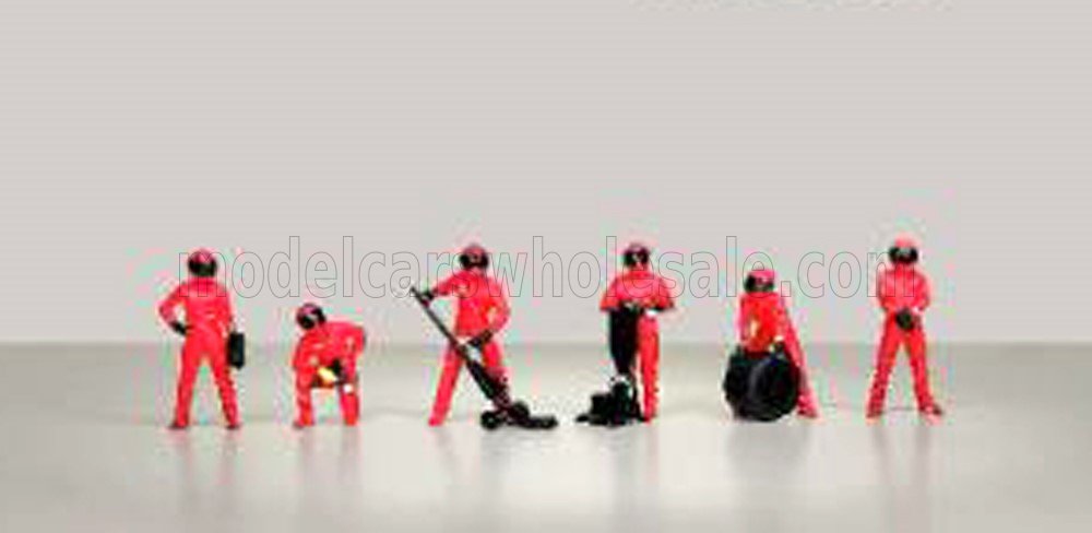 AMERICAN DIORAMA - 1/64 - FIGURES - F1 SET - DIORAMA TEAM RED PIT-STOP CREW FIGURES 6 X MECCANICI - MECHANICS - RED