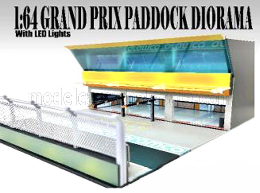 AMERICAN DIORAMA - 1/64 - ACCESSORIES - GRAND PRIX PADDOCK DIORAMA WITH LED LIGHTS - F1 TEAM ORANGE PIT-STOP - ORANGE BLACK