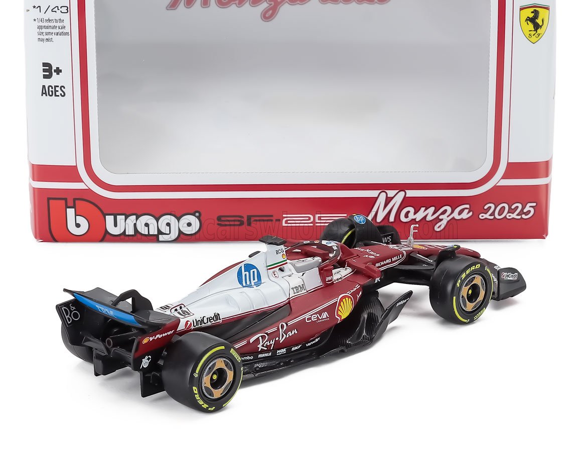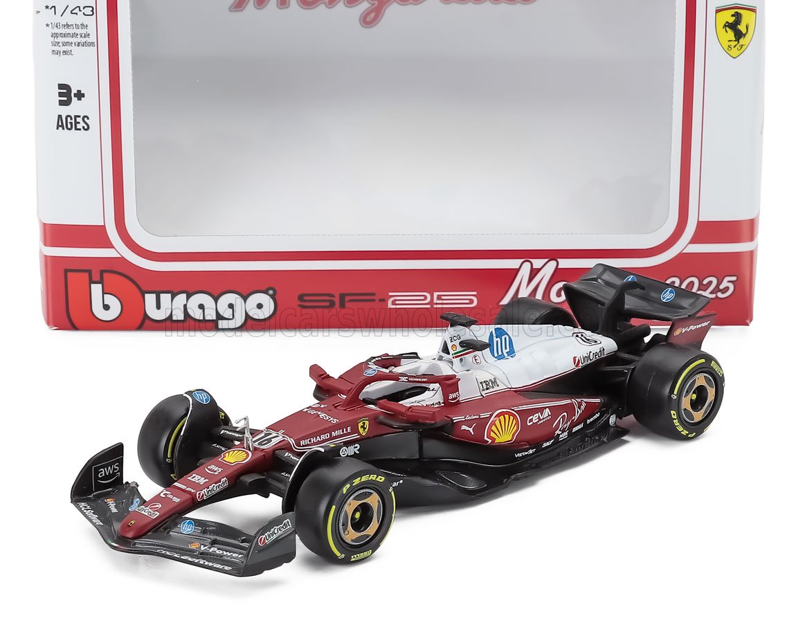 BURAGO - 1/43 - FERRARI - F1 SF-25 TEAM SCUDERIA FERRARI HP N 16 MONZA ITALY GP 2025 CHARLES LECLERC - NIKI LAUDA 50th ANNIVERSARY WORLD CHAMPION - RED WHITE
