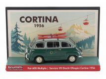 FIAT - DIORAMA 600 MULTIPLA SERVIZIO VII GIOCHI OLIMPICI CORTINA CON SCI 1956 - 2 TONE GREEN