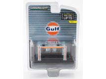 ACCESSORIES - GULF OIL GARAGE SET OFFICINA - PONTE SOLLEVATORE AUTO - FOUR POST LIFT - LIGHT BLUE ORANGE