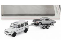 MERCEDES BENZ - G-CLASS (W463) 2018 WITH TRAILER + SL-CLASS 450SLC 5.0 COUPE (C107) 1980 - WHITE SILVER BLACK