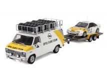 CHEVROLET - RALLY SET - G30 VAN ASSISTANCE TEAM OPEL EURO 1986 WITH TRAILER + OPEL MANTA 400 Gr.B N 3 RALLY TOUR DE CORSE 1984 GUY FREQUELIN - CHRISTIAN TILBER GILBERT - WHITE YELLOW GREY